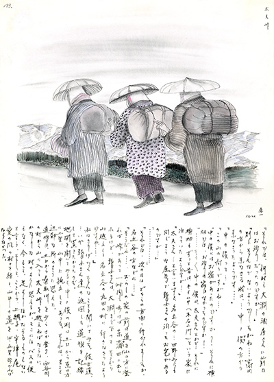 | 1978(昭和53)年 | 「絵日記 瞽女を訪ねて」(日本放送出版協会)、「斎藤真一放浪記」 (美術出版社)を刊行。 ドイツでの個展開催(アキシオム画廊)のため渡欧。 |